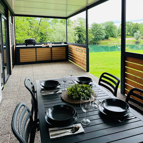 Luxury Natura House – mobilna hiška, vam v osrčju reke Kolpe nudi zavetje in pobeg pred divjim tempom sodobnega načina življenja. Neposredno ob reki v izjemno prisrčnem resortu BIG BERRY se nahaja povsem nova hiška proizvajalca Hosekra, sodobno opremljena s pripadajočo pokrito teraso ter letno kuhinjo.
